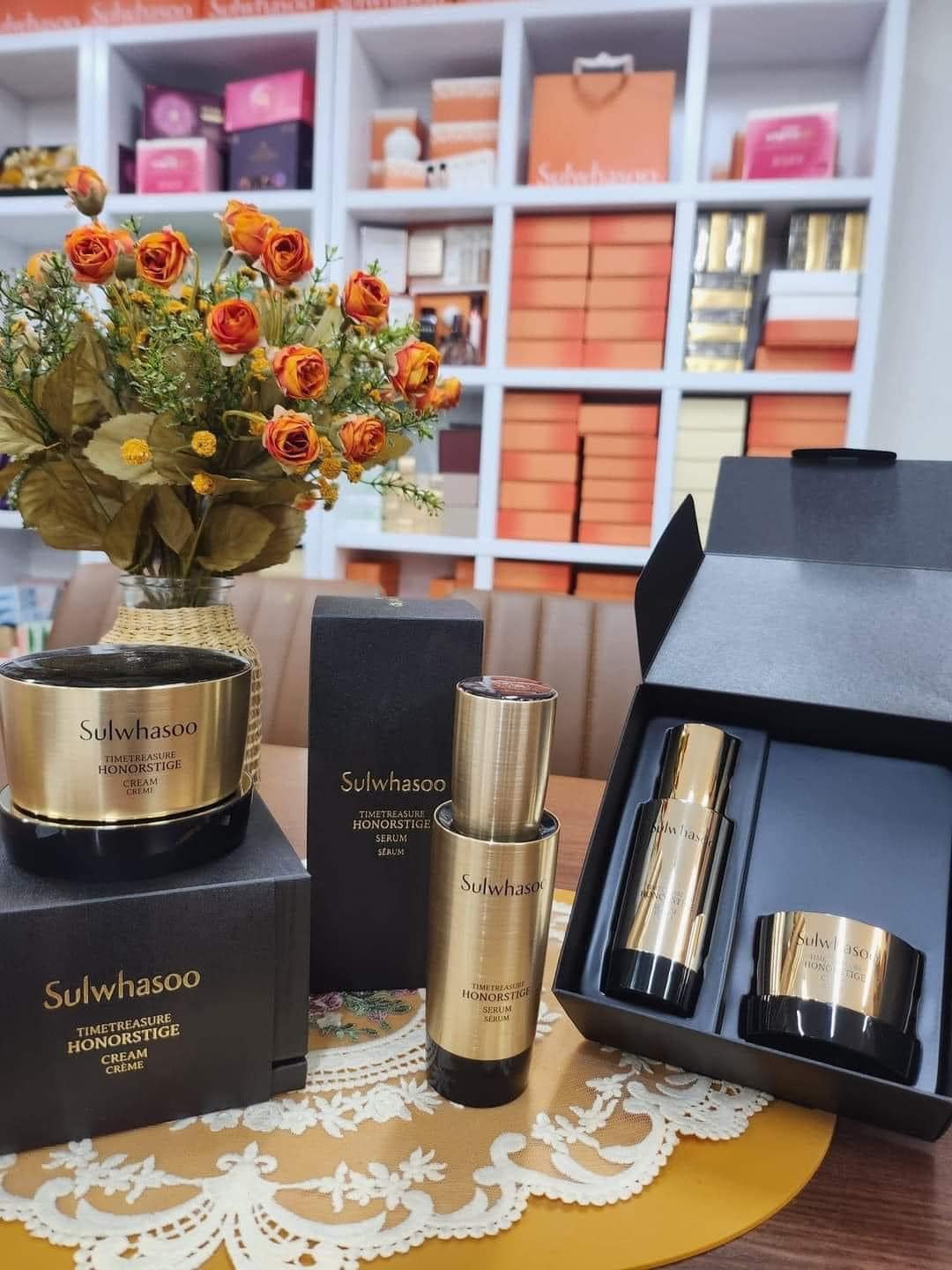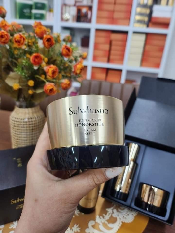 -Timetreasure Honorstige Tiếp nối thành công của dòng kem trẻ hóa Harmonizen, Sulwhasoo lại làm mới dòng sản phẩm cao cấp nhất của mình để cho ra Timetreasure Honorstige Bằng sự kết hợp giữa công nghệ đột phá nhất của Sulwhasoo và kiến thức Đông Y lâu đời, Sulwhasoo cuối cùng đã giải mã được cách trẻ hóa làn da toàn diện nhất mà không một thương hiệu nào khác có thể đạt tới, giải quyết các vấn đề lão hóa do môi trường, cơ địa và cả nếp sống hằng ngày.